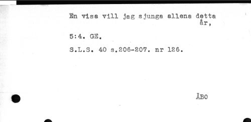 //// En visa vill jag sjunga allena detta //// o //// ar, //// 5:4. GE. //// < //// S.L.S. 40 s.206-307. nr 126. ////