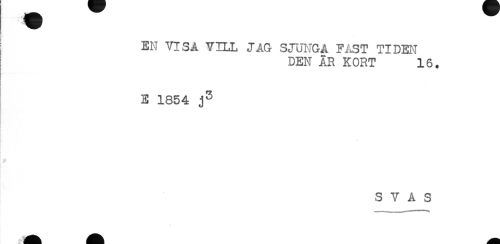 //// EN VISA VILL JAG SJUNGA FAST TIDEN //// DEN ÄR KORT 16. //// ! //// E 1854 j3 //// * //// S V A S ////