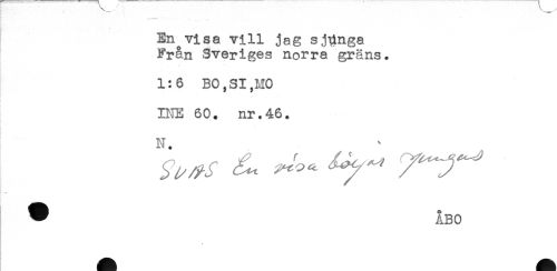 //// En^vlsa vill jag sjunga //// Från Sveriges norra gräns. //// 1:6 BO,SI,MO //// INE 60. nr.46. //// N. //// ^ ÅBO ////