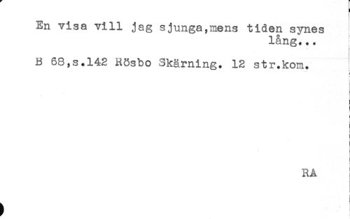 //// En visa vill jag sjunga,mens tiden synes //// lång... //// B 68,s.142 Rösbo Skärning. 12 str.kom. //// t* //// ! //// t //// RA : //// i ////