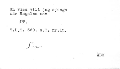 //// En visa vill jag sjunga //// när ängslan oss //// LT. //// S.L.S. 360. s.8. nr.15. //// * //// ÅBO ////
