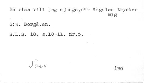 //// En visa vill jag sjunga,när ängslan trycker //// mig //// 6:3. Borg&.sn. //// S.L.S. 18. s.10-11. nr.5. //// * //// ^^ ABO ////