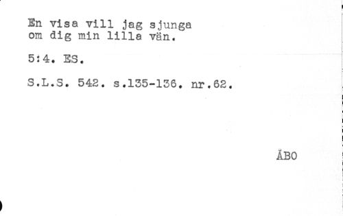 //// En visa vill jag sjunga //// om dig min lilla vän. //// 5:4. ES. //// S.L.S. 542. s.135-136. nr.62. //// i //// c //// ) //// t //// ! //// b //// ! //// ! //// t //// ÅBO //// < //// ! //// i //// < //// { //// i //// i //// ! //// f ////