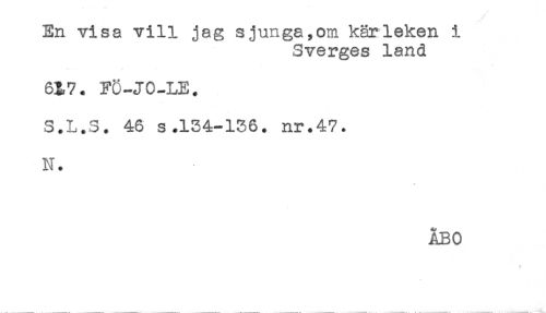 //// En visa vill jag sjunga,om kärleken i //// Sverges land //// 617. Fö-JO-LE. //// S.L.S. 46 s.134-136. nr.47. //// N. //// ÅBO //// f ////