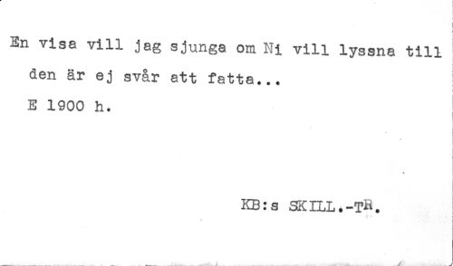 //// i //// f //// En vise vill jag sjunga om Ni vill lyssna till //// i, //// den är ej svår att fatta... //// , < //// i //// E 1900 h. //// t //// ! //// j //// I //// ] //// ! //// < //// ; //// KB:s SKILL.-?R. //// < ( ////