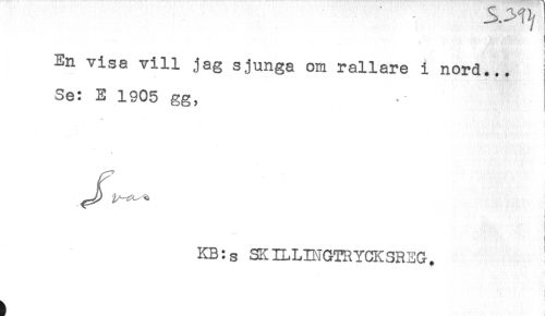 //// .....v .' '' . , } //// En visa vill jag sjunga om rallare i nord... //// Se: E 1905 gg, //// ** .< //// f //// I //// . //// j //// KB:s SSILLD^GTRYCKSREG. ////