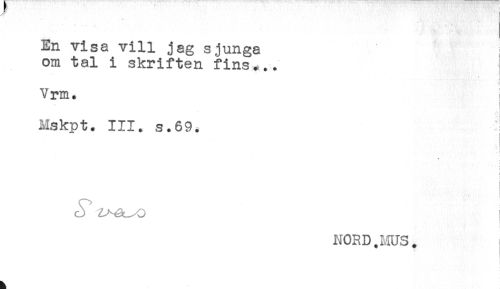 //// En visa vill jag sjunga //// om tal i skriften fins... //// 1 //// Vrm. I //// Mskpt. III. s.69, ! //// ^ i //// i ////