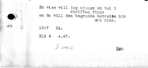 //// En visa vill jag sjunga om tal i //// skriften finns //// jåH^ om du vill den begrunda betrakta hör //// oc h mins . //// ^ ^ ... 13:7 FA. //// SLS 4 s.47. //// ^ ABo ////