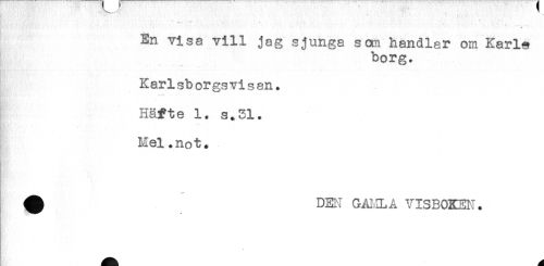 //// * //// En visa vill jag sjunga son handlar om Karla //// borg. //// Karlsborgsvisen. //// f - s //// Häfte 1. s.31. //// HR //// Mel.not. //// ^ Dm GAMLA VISBOKEN. ////