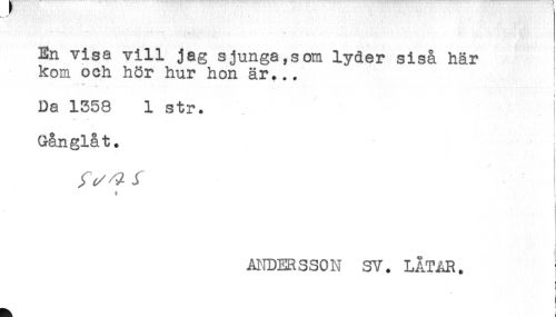 //// ' * * //// En visa vill jag sjunga,som lyder siså här //// kom och hör hur hon är... //// ' " - ! //// Da 1358 1 str. //// ** //// Gånglåt. //// t //// ANDERSSON SV. LÅTAR. //// ) //// ) //// } //// i ////