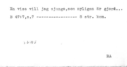 //// En visa vill jag sjunga,som nyligen är gjorå... //// B 47:7,s.7-----8 str. kom. //// A //// RÅ ////