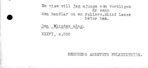 //// En visa vill jag sjunga som verkligen //// ar s ann //// ^ den handlar om en rallare,Blind Lasse //// I heter han. //// Den _Blindes_sång * //// i //// XXXVI, s.332 //// ? //// f //// REHIIBBRG ARBETETS FOLKDIKTNING. ////