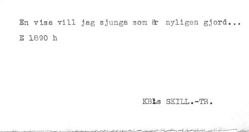 //// En visa vill jag sjunga som är nyligen gjord... //// E 1890 h //// KBLs SKILL.-TR. ////