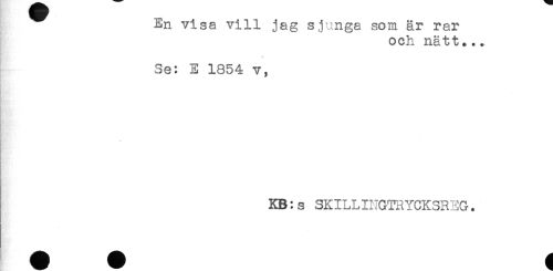 //// En visa vill jag sjunga som är rar //// och nätt..+ //// Se: E 1854 v, //// KB:s SKILLINGTRYCKSR3G. ////