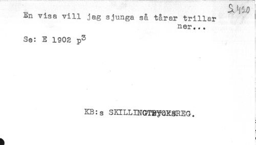 //// En visa vill jag sjunga så tårar trillar //// ner... //// Se: E 1902 p3 //// j //// i //// ; //// ! ! //// KB:s SKILLINGTByQKgREG. ////
