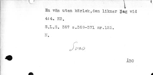 //// En vän utan kärlek,den liknar Rag vid //// * h , //// 4:4. KC. //// S.L.S. 567 s.369-371 nr.122. //// N. //// ^ ÅBO ////