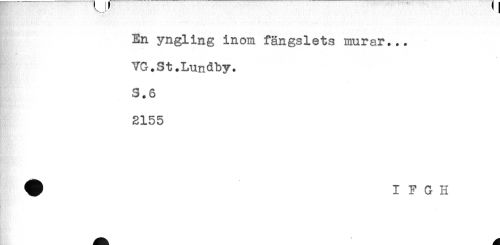 //// ... //// En yngling inom fängslets murar... //// VG.St.Lundby. //// "v. //// S.6 //// 2155 //// # I F G H ////