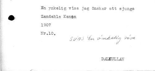 //// En ynkelig visa jag önskar att sjunga //// Zandahls Kan^n //// 1907 //// Hr.10. //// DALKULLAN //// _____- .. . ___4 , .... ... ... . , ., ... J____.__ ////