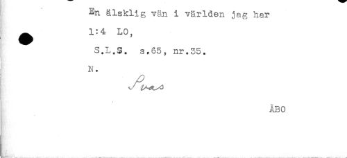//// t En älsklig vän i världen jag har //// ^ 1:4 LO, //// S.L.S. s.65, nr.35. //// y* //// N. //// I //// ! //// ÅBO ////
