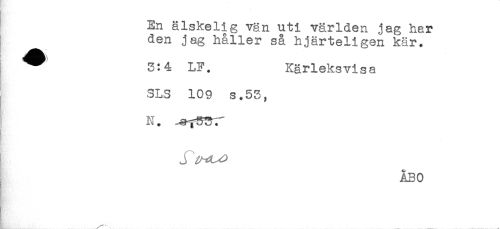 //// * //// En älskelig vän uti världen jag har //// den jag håller så hjärteligen kär. //// ^ 3:4 LF. Kärleksvis a //// SLS 109 s.53, //// ! //// j //// ÅBO //// , ... . .. ////
