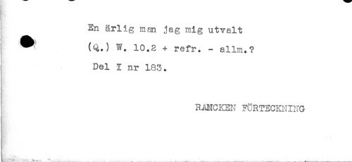 //// MW //// En ärlig man jag mig utvalt //// ^ (Q.) W. 10.2 + refr. - allm.? //// Del i nr 183. //// RANCKEN FÖRTECKNING //// i . . .. ^ . ^ ^ ////