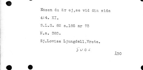 //// Ensam du är ej,se vid din sida //// 4:4. Kl. //// S.L.S. 82 s.185 nr 73 //// N.s. 383. //// Sj.Lovisa Ljungdell,Yreta. ////