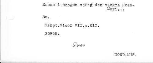 //// j^nsam i skogen sjöng den vackra Rose- //// Mari... //// <.____; Sm, //// Mskpt.Visor VII.s.613. //// 29865. //// NORD.HUS. //// ..... ..,......-...... -L---- - - - - ---.-,-,--....... ..... .... -- - ' .... -- <__-__- - ' - ////