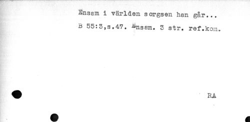 //// Ensam i världen sorgsen han går... //// B 55:5,s.47. ^nsem. 5 str. ref.kom. //// \ ////