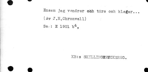 //// Ensam jag vandrar ohh tärs och klagar... //// (Av J.H.Chronvall) //// . ^ * //// Se,. : E 1901 b^, //// KB: s SKILLINGERMCKSREG. ////
