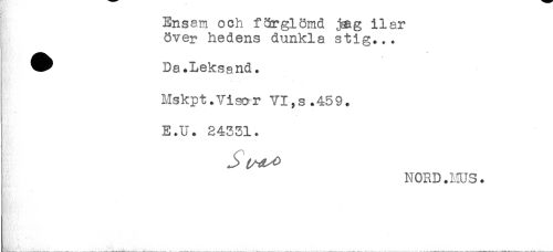 //// Ensam och förglömd yag ilar //// över hedens dunkla stig... //// Da.Leksand. //// Mskpt. Visor VI,s.459. //// E.U. 24331. //// !' NORD .MUS. //// å''' //// * ////