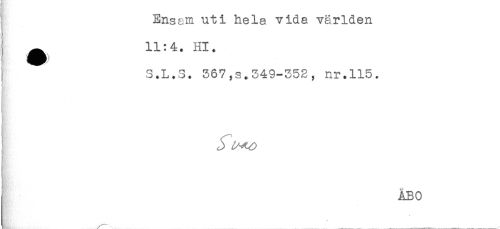 //// Ensam uti hela vida världen //// ^ 11:4. Hl. //// i! S.L.S. 567,3.549-352, nr. 115. //// ÅBO ////
