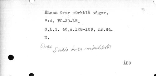 //// r * . ^ //// S Ensam över mörkblå vågor, //// < , //// * j //// 7:4. FÖ-JO-LE. //// . - t - , //// S.L.S. 46,s,128-129, nr.44. //// N. //// ÅBO ////
