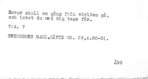 //// Envar skall en gång från världen gå, //// och intet du med dig taga får. " //// 7:4. ? //// STENSSONS SAML,HÄFTE HR. 29,s.80-81. //// ÅBO //// ____ ____ f ' ^ ' ^ ,__._____----- ////