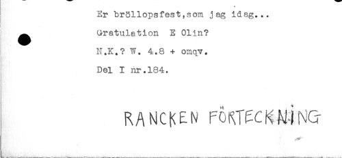 //// Er bröllopsfest,som jag idag... //// t //// i //// ^ Gratulation E Olin? //// N.K.? W. 4.8 + omqy. //// Del I nr.184. //// RANDEN //// ____* , _ ////