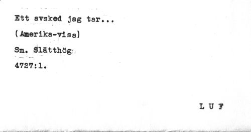 //// *" ' ^......- - - ' T - //// Ett avsked jag tar... //// t //// (Amerika-visa) //// Sm. Slätthög' //// *-- //// 4727:1. //// L U F ////
