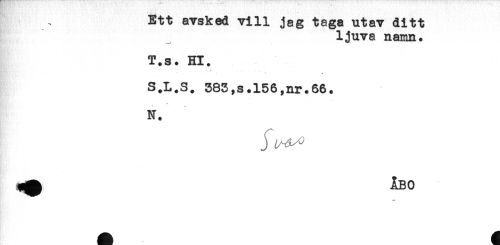 //// f - Ett avsked vill jag taga utav ditt //// ljuva namn. //// T.s. Hl. //// is * - . . //// * //// S.L.S. 383,s.156,nr.66. //// N. ////