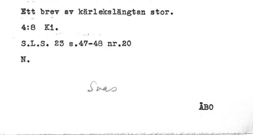 //// Ett brev av kärlekslängtan stor. //// ** //// 4:8 Ki. //// - .... -<! - - //// S.L.S. 23 s.47-48 nr.20 //// N. //// ÅBO ////