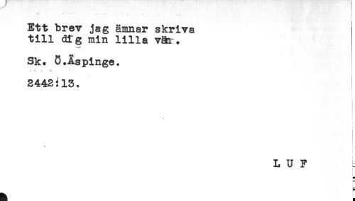 //// Ett brev jag ämnar skriva //// till dig min lilla väl. //// Sk. Ö.Äspinge. //// - v- ' ** r //// 2442 i 13. //// i //// i //// t //// L U F b //// : ////