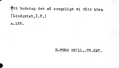 //// Ett budskap det så sorgsligt wi fått höra //// " ' i //// (Lindqwist,I.F.) //// s.125. //// H-FORS SKILL.-TR.KAT. ////