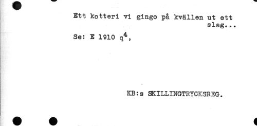 //// Ett kotteri vi gingo på kvällen ut ett //// slag... //// Se: E 1910 q^, //// KB:s SKILLINGTRYCKSREG. ////