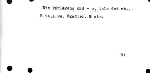 //// < * ! - //// Ett kärl&kens ord - o, tala det ut... //// --- -- - ' - ,, - //// B 94,s.94. Skatter. 8 str. //// . //// ! //// RA ////
