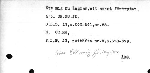 //// Ett mig nu ångrar,ett annat fSrtryter, //// 4:6. OR.MU.JE. //// K-'. ' * . . < . . //// S.L.S. 19,s.260-261,nr.88. //// N. OR.m, //// ..-.. . . _____ //// -- //// S.L.S. 22, nothäfte nr.2,s.678-679. //// W ^ ^ ABQ. //// R- - ////