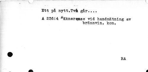 //// - - ' * ___ .. . //// Ett p& nytt.Tv& går.... //// A 236:4 ^äkneramsa vid handmätning av //// brännvin, kom. //// ^ RA //// - ////