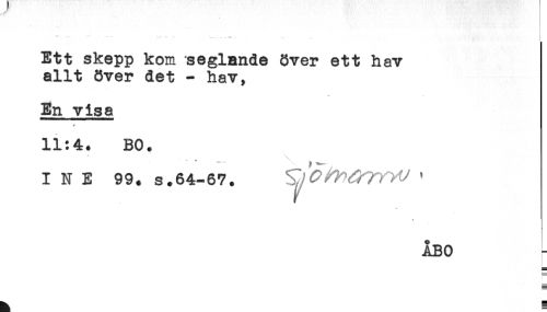 //// Ett skepp kom seglande över ett hav //// allt över det - hav, //// En visa //// 11:4. BO. //// ** //// I N E 99. s.64-67. W ' //// A //// ÅBO //// ^ B ////