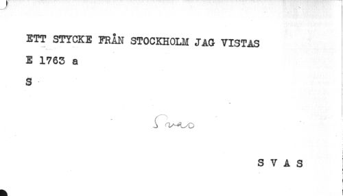 //// f //// ETT STYCKE FRÅN STOCKHOLM JAG VISTAS //// E 1763 a //// S //// i //// S V A S ////
