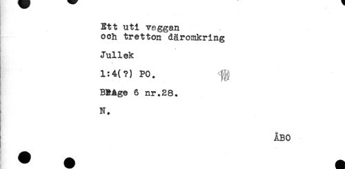//// j . . //// Ett uti vaggan //// och tretton däromkring //// Jullek //// * //// l:4(?) PO. ^ //// BBAge 6 nr.28. //// N. //// ÅBO //// T ** //// } § § ^ å ////