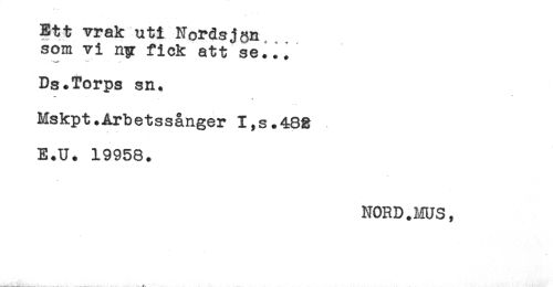 //// Ett vrak uti Nordsjgn //// som vi ny fick att se..i //// Ds.Torps sn. //// << //// Mskpt.Arbetssånger I,s.48g //// E.U. 19958. //// NORD.MUS, //// ___L .. ////