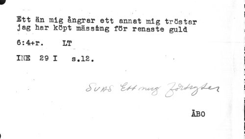 //// - r-.. -. . . //// * ! //// Ett än mig ångrar ett annat mig tröstar //// jag har köpt mäss&ng för renaste guld //// 6:4+r. LT //// - - .. s //// INE 29 I s.12. ! //// ! //// t //// b //// a //// i //// ÅBO //// ! //// , ' ////