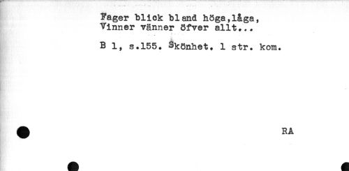 //// Fager blick bland höga,låga, //// Vinner vänner Öfver allt... //// ^ - " * - , - //// B l, s.155. Skönhet. 1 str. kom. //// s * //// A ^ ////