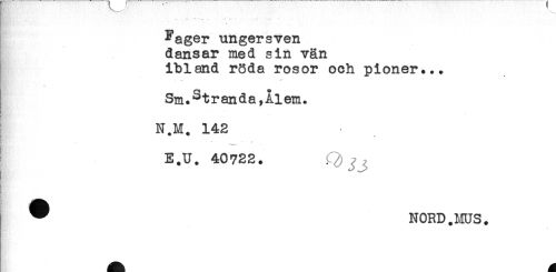 //// * .. . . //// Fager ungersven //// dansar med sin vän //// ibland röda rosor och pioner... //// } Sm.Stranda,Ålem. //// N.M. 142 //// E.U. 40722. ////